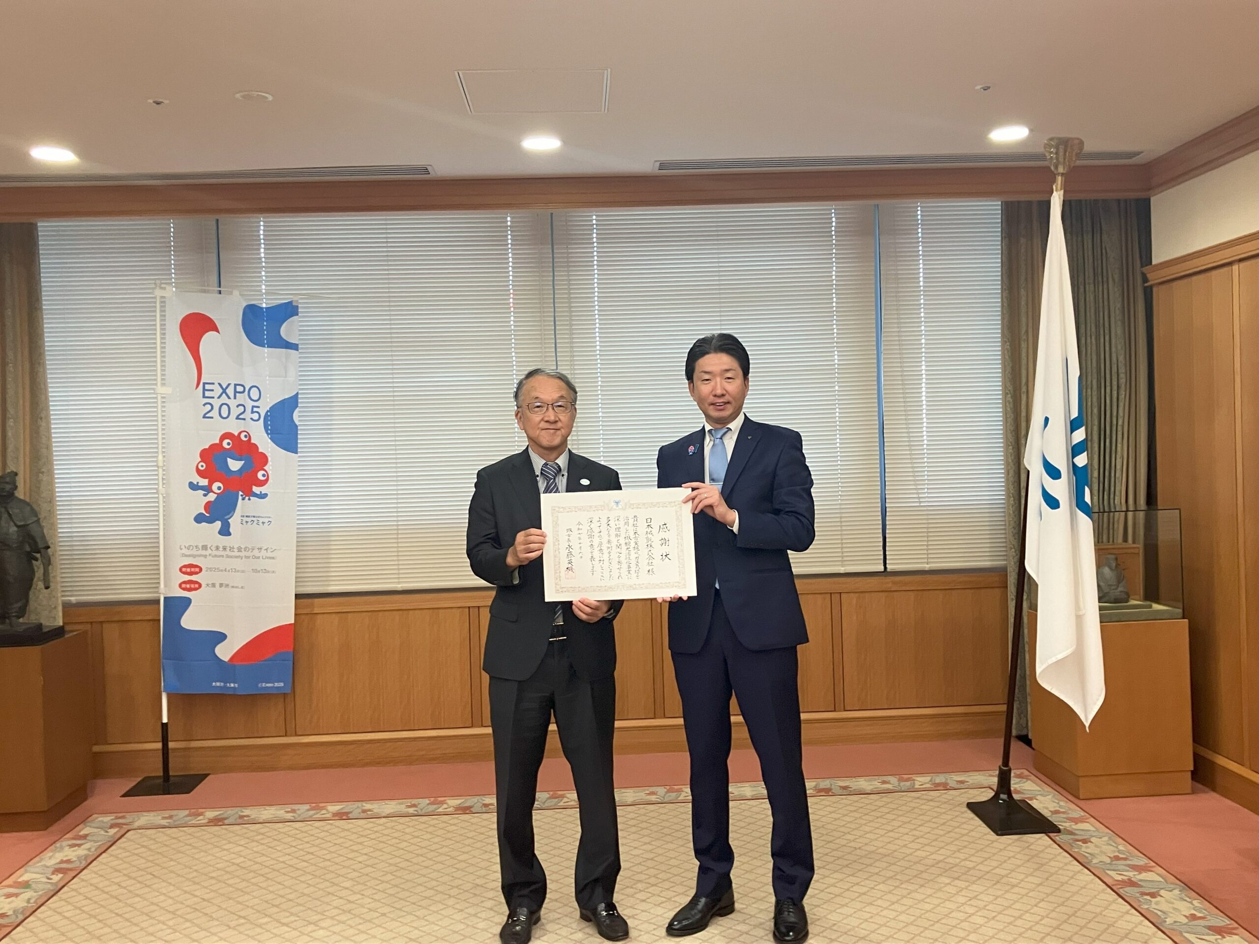 2025.10.06 お知らせ 『おおさか堺バルーン』事業を支援しました 地域貢献の一環として、当社が『おおさか堺バルーン』事業への支援をいたしました。2025/10/03(金)大仙公園に於いて吉村大阪府知事、永藤堺市長との記念式典が開催され、2025/10/06(月)堺市役所に於いて永藤堺市長から感謝状が授与されました。当社は、今後も地域活性化への協力を進めてまいります。